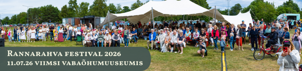 Rannarahva festival 2026 kava 11. juulil 2026 toimub Rannarahva festival Viimsi vabaõhumuuseumis. Kava on täienemisel. Festivali ajakava 13.00 Rannarahva festivali avamine13.15- 13.45 Rahvatants ja laul14.30- 15.30 Näituse avamine ja ekskursioon Viimsi vabaõhumuuseumis15.30- 16.30 Mängud, võistlused ja mõõduvõtud17.00- 20.00 Rannarahva festivali peaesineja Toimumisajad: 10.00- 14.00 Taluturg10.00- 16.00 Laat Viimsi vabaõhumuuseumi alal10.00- 17.00 Lasteala13.00- 20.00 Rannarahva festival